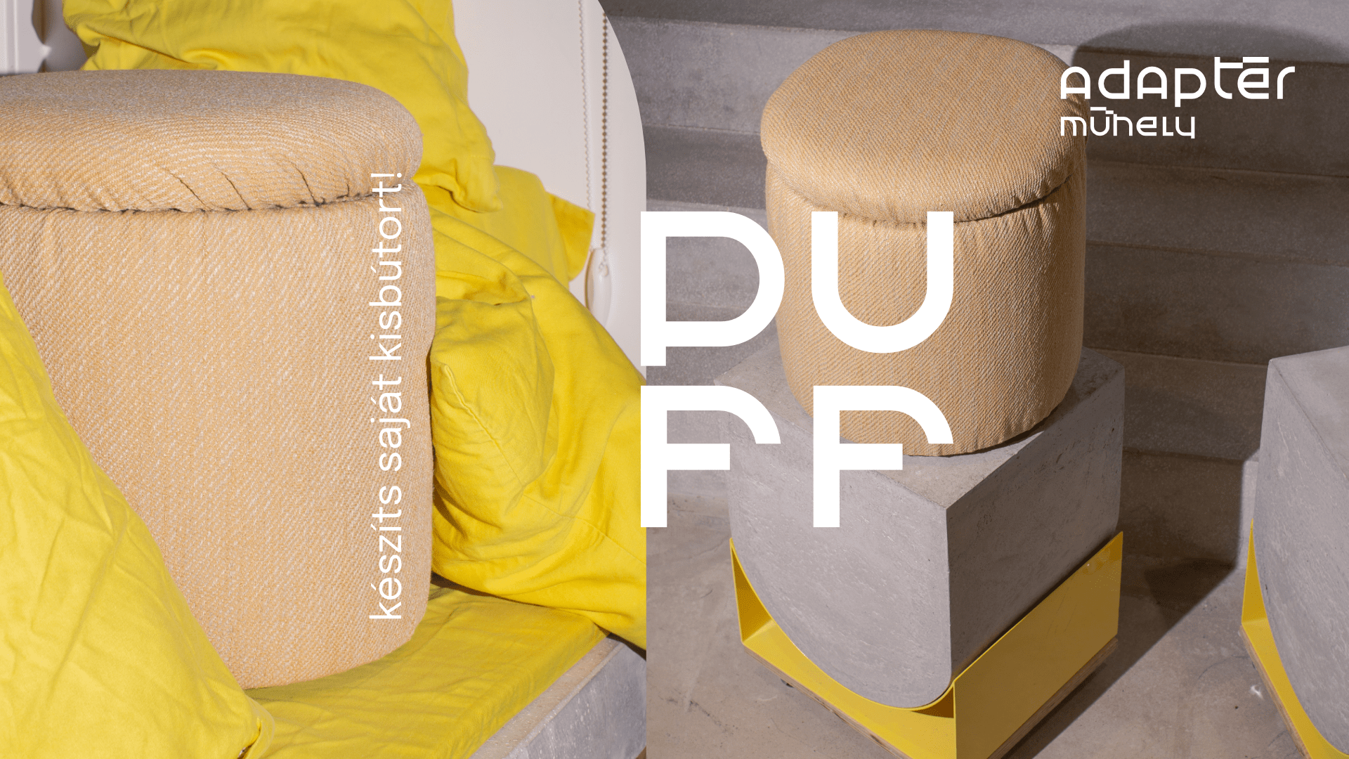 Minden otthonba kellene legalább egy puff, ugye? De ki mondta, hogy a puff csak unalmas, bolti darab lehet? Az Adaptér legújabb kurzusán megmutatjuk, milyen sok lehetőség rejlik ebben az otthoni kiegészítőben. A program végére nemcsak hogy hazavihetsz egy egyedi, kézzel készített kisbútort, de közben elsajátíthatod a kárpitozás, csiszolás, fűrészelés és csavarozás alapjait is műhelymestereinktől.