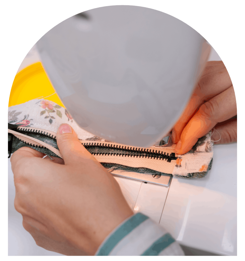 Elkészített táska befejezése, cipzár és gomb felvarrás, szélek elszegése, igazítás